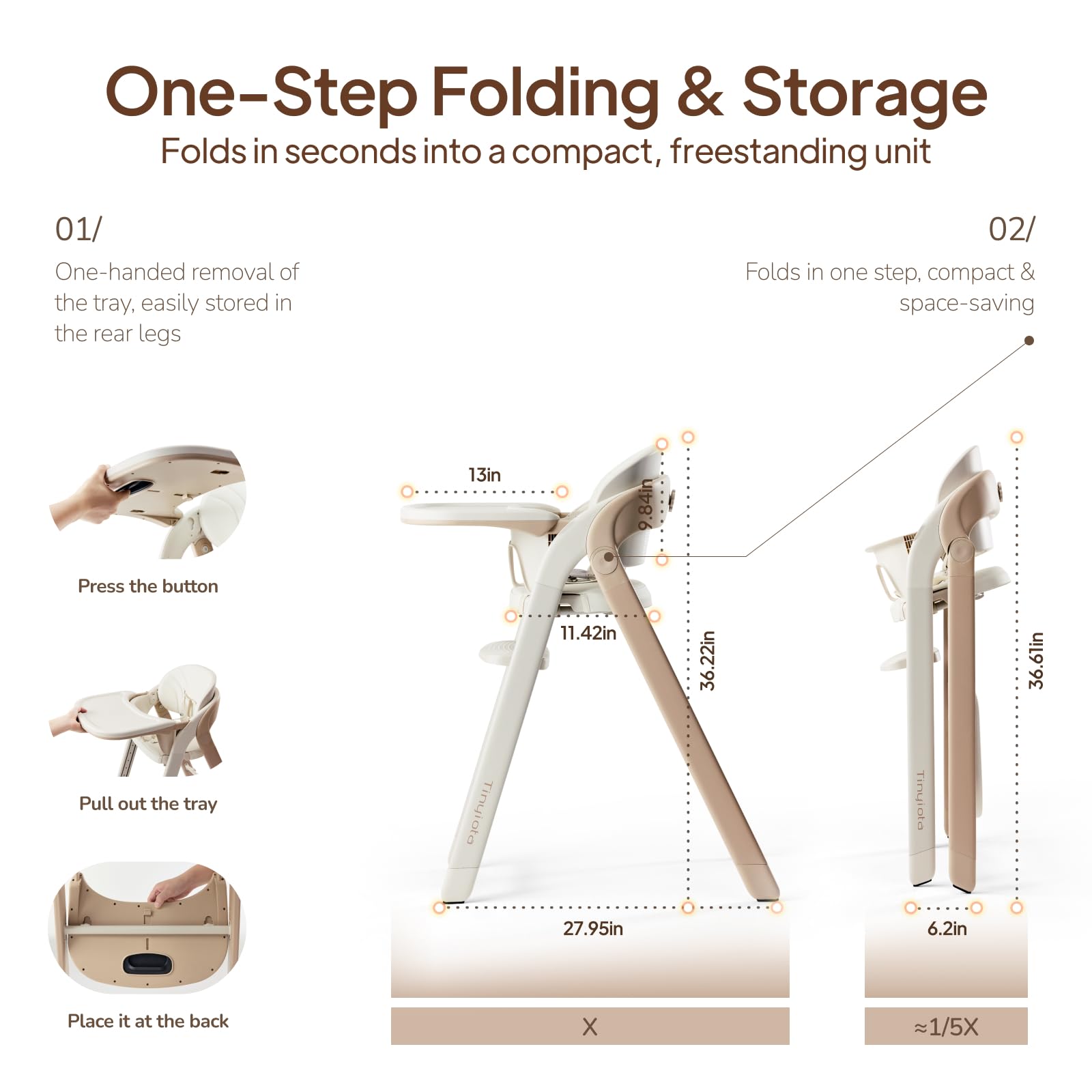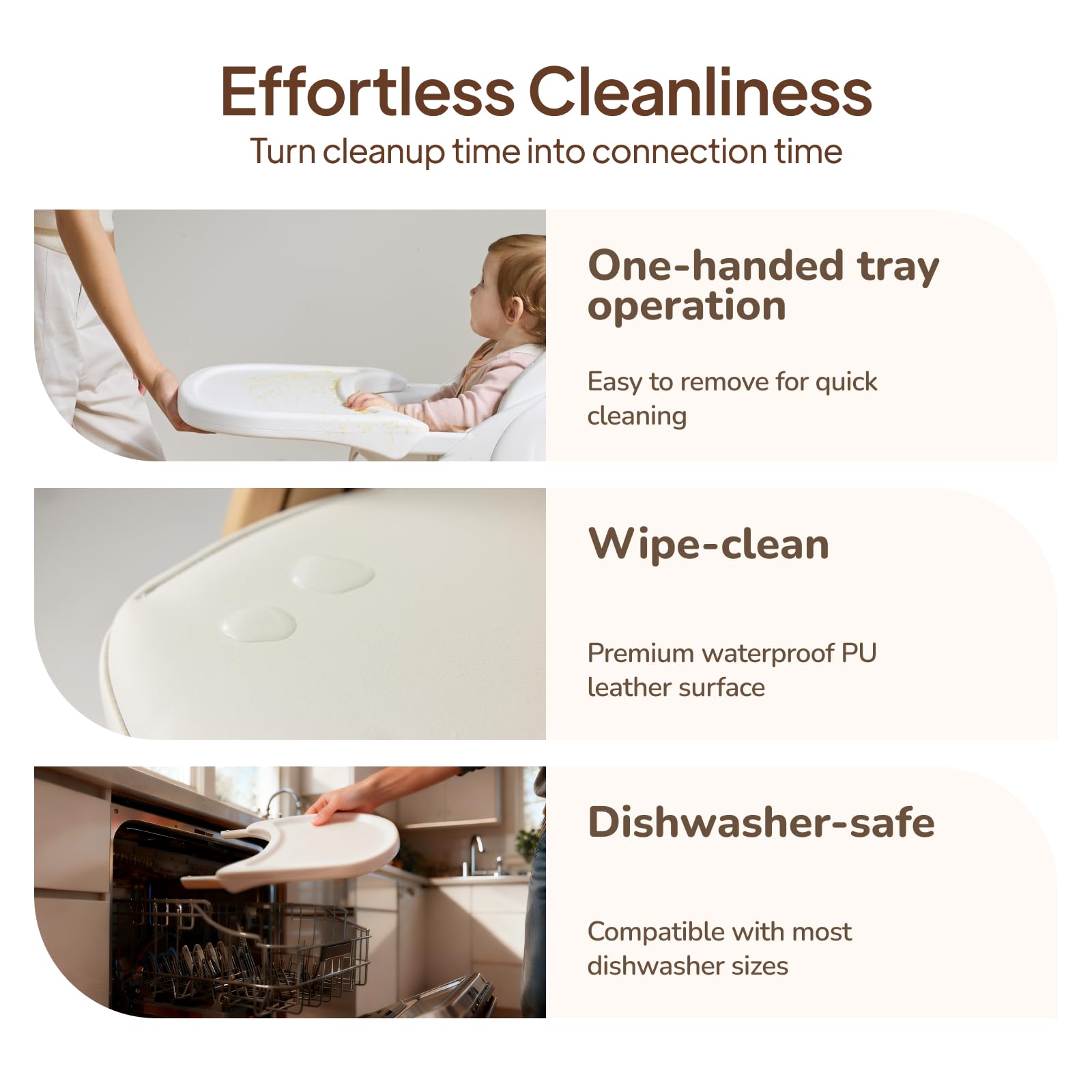 - 【Easy to Clean】The waterproof PU seats and backrest wipe clean with ease. The tray is removable with one hand and dishwasher-safe, making cleanup quick and effortless for busy parents.